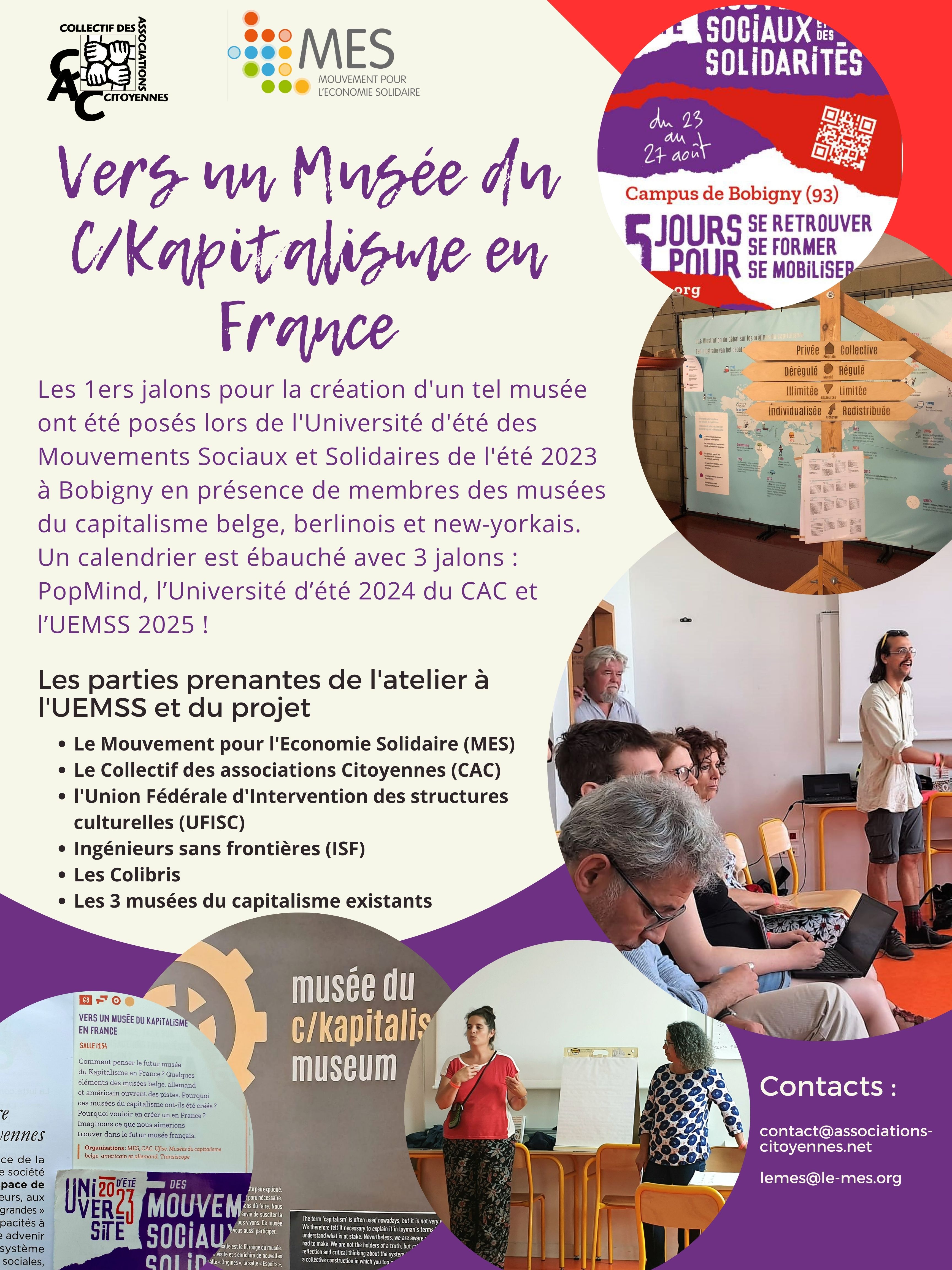 voir la vidéo (doc de travail) réalisée lors de l'université d'été des mouvements sociaux et des solidarités à Bobigny en août 2023, où les musées du capitalisme belge, allemand (et américain hors vidéo) sont venus nous présenter leurs démarches