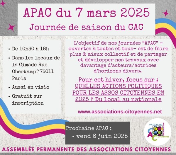 A l'heure d'une nécessaire politisation des associations pour faire face aux crises (démocratique, budgétaire, environnementale...), nous vous invitons à transmettre cette invitation autour de vous et à rejoindre notre groupe de travail."