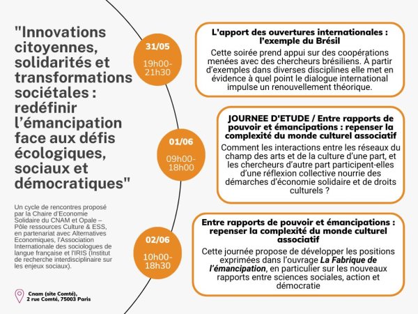 Le RNMA, en partenariat avec le Collectif des Associations Citoyennes et LA Coalition, propose un cycle de webinaires visant à explorer les leviers possibles de renforcement le monde associatif. Il s'agira de réfléchir collectivement à des alternatives et des solutions, afin d'accompagner les associations pour faire face aux difficultés et défis actuels.