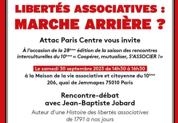 Avec l'intervention de Jean-Baptiste Jobard - coordinateur du Collectif des Associations Citoyennes et auteur de Une histoire des libertés associatives aux éditions Charles Léopold Meyer