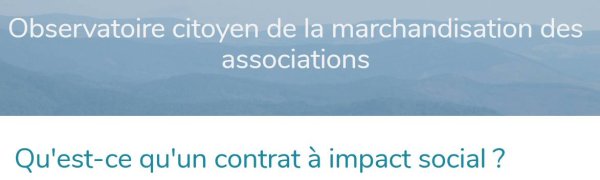 Les « contrats à impact social », « french impact » ou la volonté de créer « une philanthropie à la française », mettent peu à peu les associations entre les mains des grands groupes multinationaux, les obligeant à entrer dans un système qu'elles ne maîtrisent pas et qui leur fait perdre leur liberté et leur pouvoir d'agir.