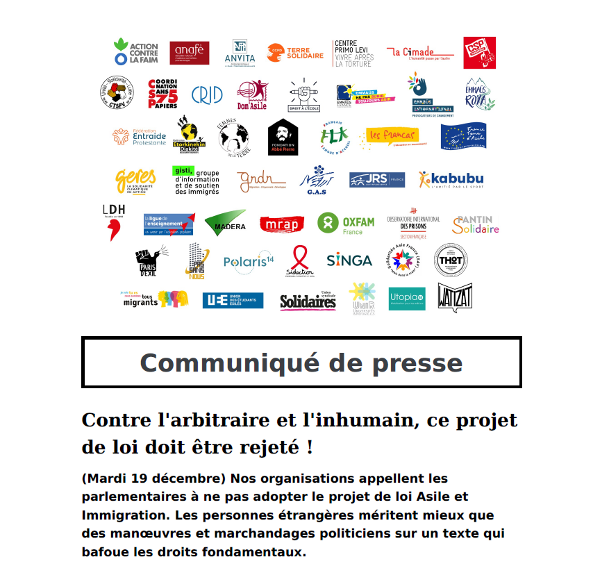 [19 décembre] Appel unitaire des 150 organisations à retrouver sur e site du GISTI : Contre l’arbitraire et l’inhumain, ce projet de loi doit être rejeté