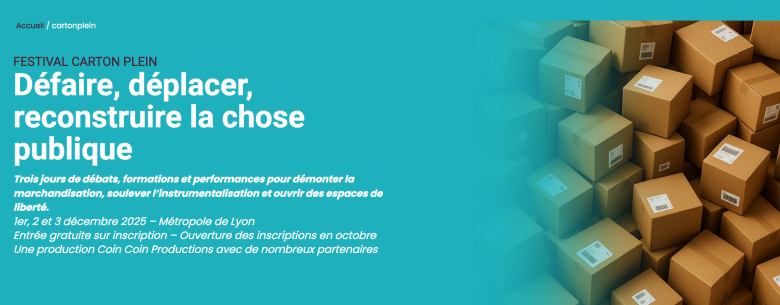 La création du festival Carton plein est une initiative de Coin Coin Productions en partenariat avec les Collectif des associations citoyennes, l'Observatoire des libertés associatives, le Mouvement associatif AURA, la chaire ESS de Lyon 2.