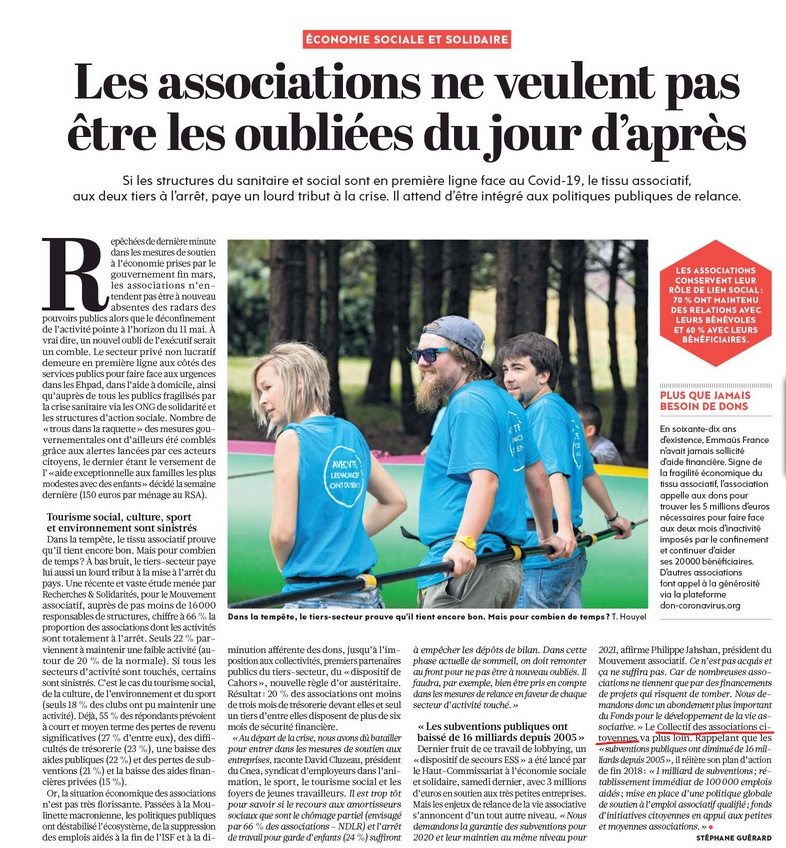 Humanité : Les associations ne veulent pas être les oubliées du jour d’après, le Mardi, 21 Avril, 2020 par Stéphane Guérard.