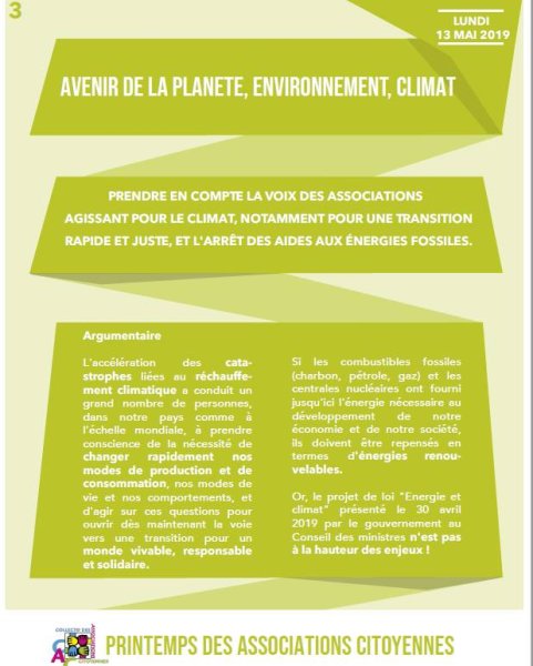 Les thèmes de la campagne de mobilisation lancée au printemps 2019