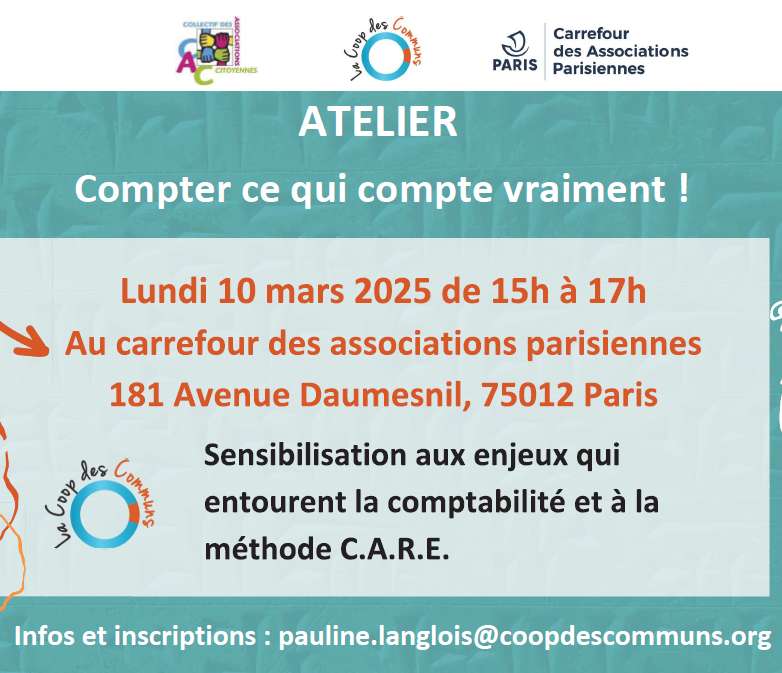 Cette séance en présentiel ou en visio est réalisée dans le cadre de notre Observatoire Citoyen de la Marchandisation des Associations (OCMA) et sera un ATELIER de Sensibilisation aux enjeux qui entourent la comptabilité et à la méthode C.A.R.E. porté par la Coop des Communs.Dans le cadre comptable actuellement en vigueur, la conservation du capital financier est une obligation. Il n’existe pas d’équivalent pour préserver le capital humain et le capital naturel. Or, la compréhension de l’entreprise passe par sa comptabilité, elle est au fondement de toute décision de gestion et des analyses réalisées par les financeur·ses et la base de l’impôt sur les sociétés.