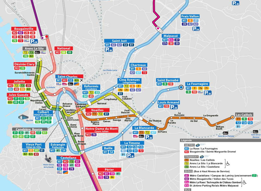Horaires de la ligne 1 arrêt Fourragère pour l'Auberge Plan des transports marseillais